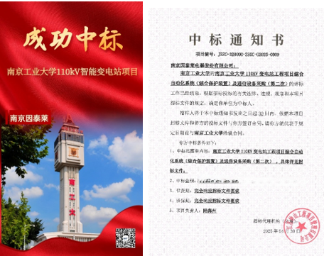 喜報丨南京因泰萊成功中標(biāo)南京工業(yè)大學(xué)110kV智能變電站項目