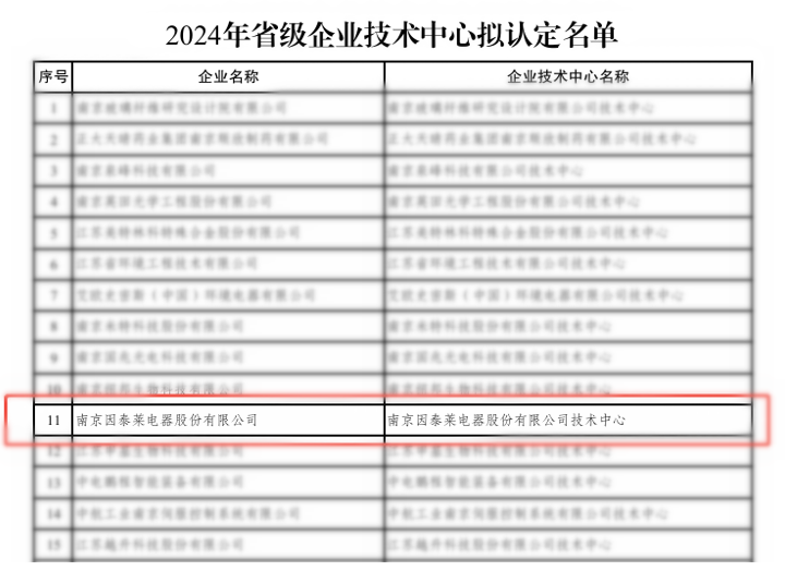近日,南京因泰萊電器股份有限公司憑借扎實的技術(shù)創(chuàng)新能力和行業(yè)影響力,經(jīng)省工信廳、省發(fā)改委、省科技廳、省財政廳、省稅務(wù)局等部門認定,成功獲評為江蘇省省級企業(yè)技術(shù)中…